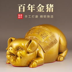 [Cerdo dorado centenario] Adorno de cerdo de latón Artesanía Sala de estar Decoraciones para el hogar Oficina Sala de estar Cerdo de cobre del zodiaco