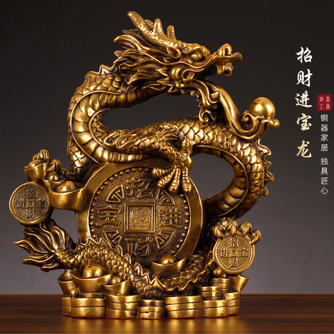 Adorno de dragón de bronce Latón Bronce Dragón Oficina Muebles para el hogar Adorno de latón completo Adorno de dragón Artesanía grande