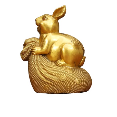 Fabricante al por mayor adorno de conejo de latón decoraciones para el hogar sala de estar conejo del zodiaco mascota artesanía conejo de cobre