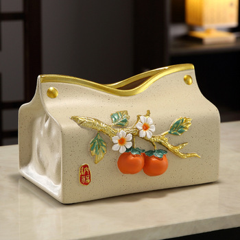 Caja de pañuelos de caqui chino, caja de servilletas de papel ligera de lujo de gama alta para el hogar, sala de estar, dormitorio, comedor, mesa de café