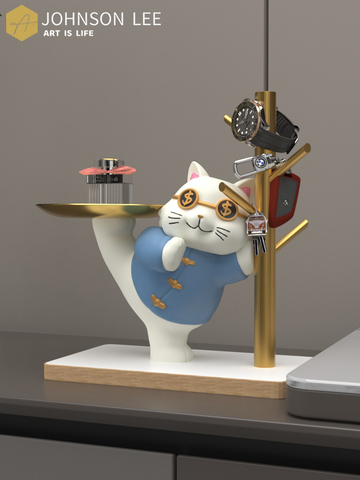 Gato de la suerte, arte popular, escultura de resina, bandeja de almacenamiento de llaves de entrada, muebles para el hogar, adorno para el salón, regalo para el nuevo hogar