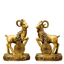 Estatuilla de latón del zodiaco de las ovejas de la suerte Feng Shui decoración del hogar ornamento para sala de estar/estudio escritorio regalo de cumpleaños con deseos