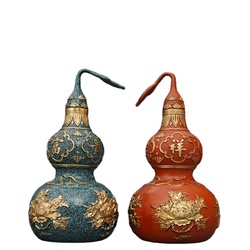 Adorno de calabaza de cobre de peonía rica, tapa abierta, decoración de entrada interior de Casa hueca genuina, adorno artesanal