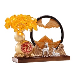 Adornos de paisaje de arena rápida de ciervo de La Fortuna, artesanías de resina china para decoración de entrada de sala de estar para regalos de inauguración de la casa