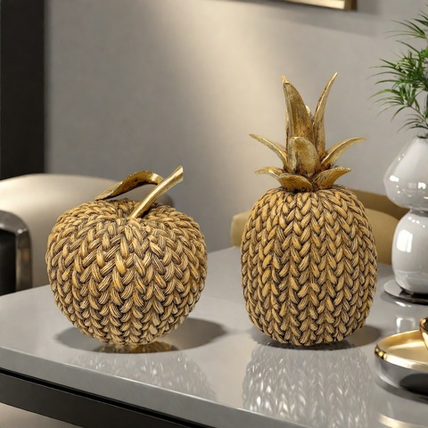 Gran oferta, adorno de piña y manzana de ratán, artesanías creativas de resina, adorno de mesa para sala de estar, decoración de Navidad