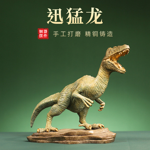 Dinosaurio de cobre pintado, velociraptor, pequeño adorno artesanal, hogar, sala de estar, entrada, oficina, escritorio, decoración de cobre