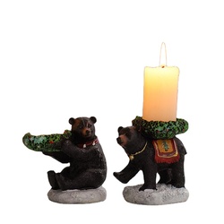Portavelas de oso negro europeo transfronterizo, adorno de resina, bandeja de taza de vela retro, decoración artesanal de entrada creativa para el hogar