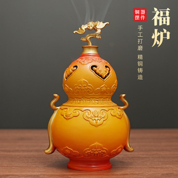 Gran estufa de la suerte, estufa de la suerte, adorno de quemador de incienso de calabaza Nafu, artesanías de cobre, exhibición del hogar, regalo de apertura