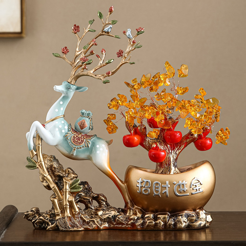Estatua de resina de ciervo de la suerte, decoración creativa para el interior de la sala de estar, gabinetes de vino exquisitos, gabinetes de TV, mesas de café, figurita